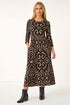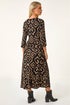 Petite Geo Print Gathered Midi Dress from Roman. Update your Autumn Winter wardrobe with our Petite geo print midi dress. Featuring a flattering round neckline and 3/4 length sleeves, this abstract piece is complete with functional side pockets and gathered waist detail for a touch of elegance. Crafted from a stretchy jersey fabric, this dress has ruching to accentuate your figure, making it the perfect go-to for any occasion. Finishing at a modest midi length, pair effortlessly with a denim jacket and boots for a stylish look!