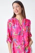 Floral Print Longline Blouse from Roman. Get ready to bloom in style this summer with this stunning floral print longline shirt. Crafted from a lightweight woven fabric, this button-through shirt is both elegant and comfortable. The collarless design and notch neckline add a touch of sophistication, while the 3/4 length tab sleeves provide versatility. Complete with side splits and a vibrant tropical print, this shirt is perfect for a sunny day outing. Pair it with shorts and sandals for a chic and relaxed summer ensemble.