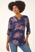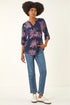 Floral Puff Print Stretch Shirt from Roman. Make a statement this Autumn/Winter season in this fabulous floral print ITY shirt. Featuring a trendy puff print and a flattering notch neck design, this shirt stands out from the crowd. Detailed with chic shoulder pleats and tab fastening on the 3/4 sleeves, this shirt offers both style and comfort. The stretch jersey fabric ensures a lovely fit, while the all-over floral print adds a touch of elegance. Pair with jeans and heeled boots for a fashion-forward look that is sure to turn heads!