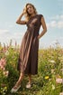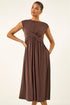 Roman Chocolate Crossover Front Stretch Midi Dress