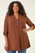 Roman Chocolate Curve Textured Buttoned Tunic Top