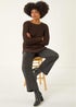 Roman Chocolate Curved Hem Stitch Knit Jumper