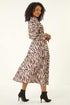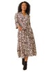 Petite Animal Print Midi Shirt Dress from Roman. Unleash your wild side with this animal print midi dress, perfect for the Autumn/Winter season. Featuring a stylish v-neck and 3/4 length sleeve, this dress has a convenient button fastening down the centre front for easy wear. The tie waist detail creates a flattering fit-and-flare silhouette, resulting in effortless elegance. Cut from a comfortable woven fabric, this pull-on style midi dress is versatile and ready to be styled with tights and heeled boots!