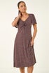 Roman Chocolate Petite Spot Drawstring Midi Dress