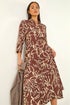 Petite Tiered Midi Dress from Roman. Feel effortlessly chic in this tiered dress, the perfect addition to your Autumn/Winter wardrobe. Featuring a round neck with a shirt collar and a smart button-up fastening on the centre front bodice, this dress exudes style. The tiered skirt offers a flattering fit and flare silhouette, crafted from a comfortable woven fabric. Tailored with a midi length and 3/4 length set-in sleeves, this dress is perfect for any occasion. Complete the look with ankle boots and a stylish jacket for a truly sophisticated ensemble.