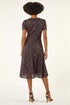 Roman Chocolate Sequin Lace Twist Front Midi Dress