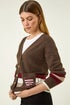 Roman Chocolate Striped Heart Knit Cardigan