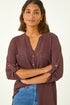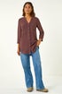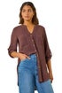 Roman Chocolate V-Neck Longline Button Detail Blouse