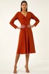 Roman Copper Wrap Bodice Tie Waist Midi Dress