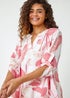 Roman Coral Palm Print V-Neck Wrap Hem Tunic Top