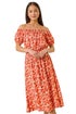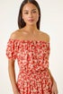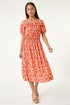 Roman Coral Petite Ditsy Bardot Midi Dress