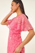 Roman Coral Petite Embroidered Mesh Midi Dress