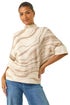 Marble High Neck Knit Jumper from Roman. Designed as a one-size piece, it offers an oversized fit for a size 10/12 while providing a more true to size fit for a size 14/16. Stay stylish and cosy with this Marble knit jumper. The high neck and batwing style make it a chic choice for the colder months ahead. Short sleeves add a unique touch, perfect for layering. Pair with jeggings and ankle boots for a fashionable Autumn/Winter look!