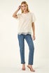 Panelled Lace Puff Sleeve Top from Roman. Elevate your summer wardrobe with this stunning lace front top. Featuring a beautiful lace panel adorned with sequins, this top exudes elegance. The round neck and short puffy sleeves add a touch of femininity and sophistication. Pair with tailored trousers and heels for a chic and stylish look that transitions seamlessly from day to night.