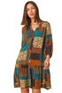 Roman Dark Green Paisley Patchwork Print V-Neck Smock Dress