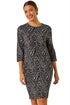 Animal Print Pocket Shift Stretch Dress from Roman. Unleash your inner fashionista with our animal print shift dress this Autumn Winter! Featuring a flattering round neckline, 3/4 warm sleeves, and practical side pockets, all crafted from a comfy stretch jersey fabric in a trendy shift shape falling at the knee. Slip into your favourite boots, tights, and coat for an effortless Autumn look, or layer with a denim jacket for added style!