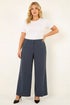 Curve Wide Leg Tailored Trouser from Roman. Step out in style this Autumn and Winter with these wide leg trousers. Crafted from a textured crepe fabric, these trousers offer a chic look and comfortable fit with their pull-on design and elasticated waist. The wide leg silhouette adds a touch of sophistication to any outfit, while the regular length is perfect for versatile styling. Pair these trousers with cosy knitwear and heels for a trendy and effortless ensemble.