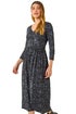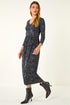 Roman Dark Grey Floral Print Ruched Stretch Midi Dress