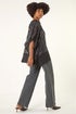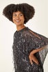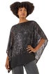 Roman Dark Grey Sequin Mesh Chiffon Hem Top