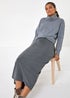 Roman Dark Grey Soft Touch Rib Midi Skirt
