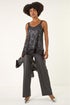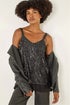 Roman Dark Grey Tassel Sequin Chiffon Top