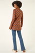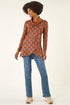 Roman Dark Orange Abstract Print Cowl Neck Top