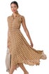 Geometric Hanky Hem Stretch Midi Dress from Roman. Get ready to make a statement in this printed midi dress, perfect for the warmer days. Featuring a stylish shirt collar and a striking geo print, this dress is designed with a flattering stretch shirred waist and hanky hemline. The button front fastening and sleeveless style make it breezy and effortless for all your Spring and Summer outings. Add sandals and a beach bag for the ultimate holiday-ready look!