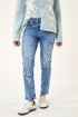 Floral Embroidered Stretch Jeans from Roman. Revamp your denim collection with these stunning embroidery jeans perfect for Autumn/Winter. These stylish jeans are adorned with beautiful floral embroidery, adding a touch of elegance to your outfit. Crafted from a comfortable stretch fabric, they feature classic details like belt loops, front curved pockets, and back patch pockets. Finished with a front zip for easy fastening. Style these statement jeans with cosy knitwear and boots for a chic seasonal look.