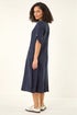 Roman Denim Textured A-Line Midi Dress