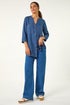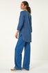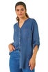 Roman Denim V-Neck Longline Button Detail Blouse