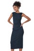 Roman Dusk Navy Ruched Cowl Neck Midi Dress