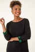 Contrast Sleeve Knitted Shift Dress from Roman. Prepare to stay cosy and stylish this Autumn Winter in our contrast sleeve knit dress. With a classic round neckline and 3/4 length sleeves, this knee-length dress is crafted from a soft knitted fabric featuring contrast detail for an extra touch of luxury and warmth. Complete the look with your favourite winter boots, tights, and a trendy coat for the perfect style.