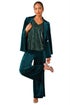 Roman Forest Green Petite Wide Leg Velvet Stretch Trouser