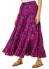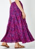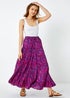 Roman Fuchsia Feather Print Tiered Cotton Maxi Skirt
