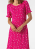 Roman Fuchsia Floral Print Fluted Hem Shift Dress