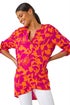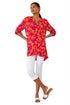 Floral Wrap Hem Tunic Top from Roman. This shadow floral print wrap hem tunic features a stylish notch neckline and 3/4 sleeves for a relaxed, feminine look. The oversized style offers a comfortable and flattering fit, perfect for warm weather. Pair it with shorts and sandals for a chic, casual outfit that’s ideal for everyday wear or a day out in the sun.