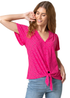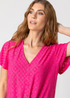 Roman Fuchsia V-Neck Broderie Stretch Jersey Tie Front Top