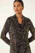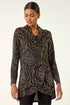 Jacquard Cowl Neck Stretch Top from Roman. Stay comfy and chic in this Autumn Winter season with our jacquard cowl neck top. Featuring a flattering cowl neckline and long sleeves to keep you warm, this top is cut from a comfortable stretch fabric with an intricate floral jacquard print. The tee shape offers a relaxed fit while still maintaining a stylish look. Pair with wide-leg trousers and ankle boots for a complete look that exudes elegance.