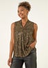 Roman Gold Sequin Pleat Front Vest Top