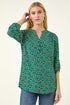 Abstract Print Stretch Shirt from Roman. Add a pop of print to your wardrobe with this printed shirt for the upcoming Spring/Summer season. This chic shirt features a trendy all-over abstract design on a stretchy jersey fabric, ensuring a comfortable fit. The stylish notch neckline and three-quarter sleeves add a touch of sophistication, while the hip-length cut makes it perfect for versatile styling. Pair with jeans and trainers for a casual yet contemporary look that will take you from day to night effortlessly!