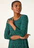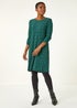Abstract Print Swing Hem Dress from Roman. Get ready to make a statement this Autumn in this fabulous abstract print dress. Featuring a classic round neck and a fun swing hem, this dress is designed for comfort and style. The ruched three-quarter length sleeves add a touch of flair to this chic piece. Pair with ankle boots and a denim jacket for a stylish, everyday look that will turn heads wherever you go!