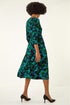 Roman Green Abstract Print V-Neck Stretch Midi Dress