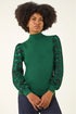 Animal Print Mesh Sleeve Knit from Roman. Elevate your knitwear collection with this stylish mesh animal sleeve jumper. Soft to touch with a unique animal print design along the sleeves, this knit features long sleeves and a chic high neck. Ideal for the Autumn/Winter season, this versatile piece pairs perfectly with jeans and heeled boots for a fashion-forward look that will keep you warm and on-trend all season long!