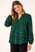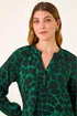 Roman Green Animal Print V-Neck Top
