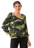 Roman Green Brush Print V-Neck Tie Sleeve Top