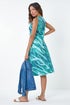 Burnout Abstract Knot Front Stretch Dress from Roman. Transport to somewhere hot and sunny in our striking wave print midi dress! This abstract design dress has Summer written all over it with its dreamy burnout print and statement twist front detail. This fit and flare dress is made from a stretch jersey fabric which is easy to pull on over the head for day to night occasions. Pair with your favourite sandals and a sun hat for a beach look or take it into the evening with heeled wedges and a shrug.