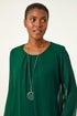Chiffon Banded Hem Pleated Top from Roman. Elevate your Autumn/Winter wardrobe with this chic pleated top. Featuring a classic round neck and intricate pleated detailing at the front neck, this top is a true standout piece. The long sleeves with elasticated cuffs, banded hem, and contrasting fabric composition of jersey inner and chiffon woven outer create a perfect blend of comfort and style. With delicate chiffon sleeves adding an elegant touch, pair with jeans and ankle boots for casual sophistication.
