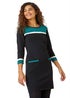 Colour Block Knitted Shift Dress from Roman. Add colour back into grey days with this colour blocked stripe knitted dress. Boasting colour block stripes on the chest, cuffs and the top of the pockets. This knitted dress features a relaxed and comfortable fit. Pair with knitted tights and ankle boots for autumn office outfit.