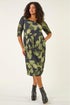 Roman Green Curve Floral Print Pocket Stretch Dress