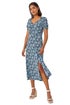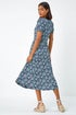 Roman Green Ditsy Floral Ruched Stretch Midi Dress